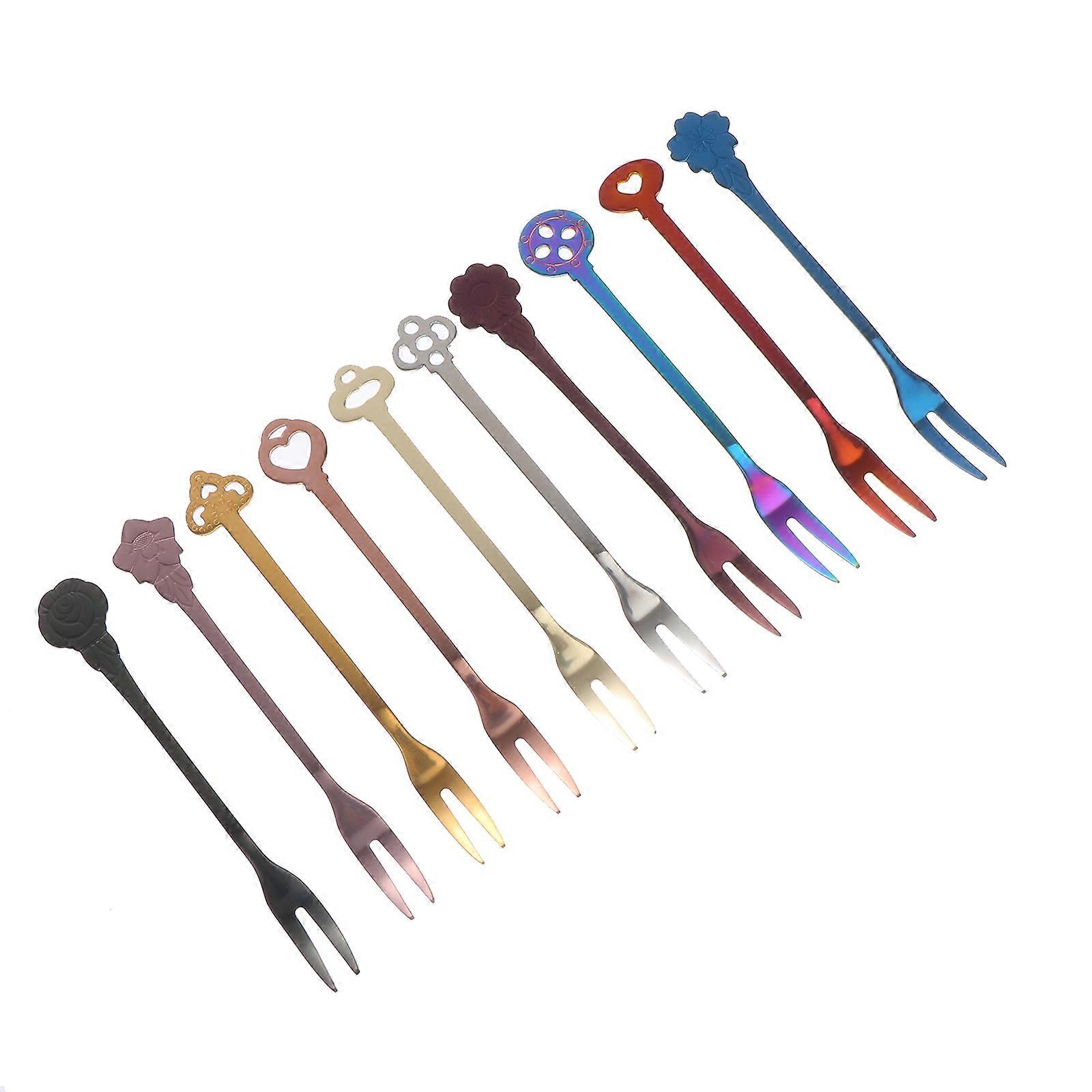 Dessert Forks Stainless Steel Serving Solid Foods Table Decoration Assorted Color 12.5X1.2CM Premium Design 10Pcs