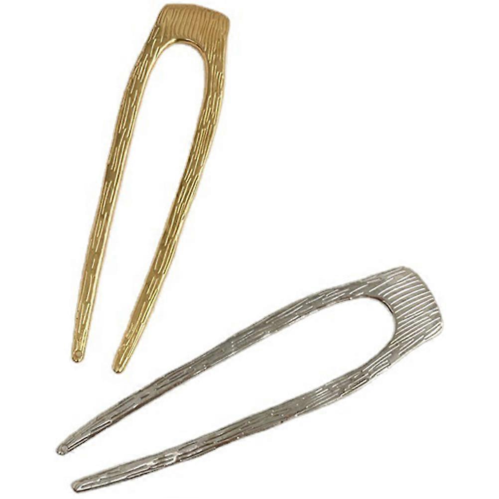 U Shaped Hair Forks French Hair Pin Metal Hair Stick Bun Hair Holder Home Assorted Color 2Pcs