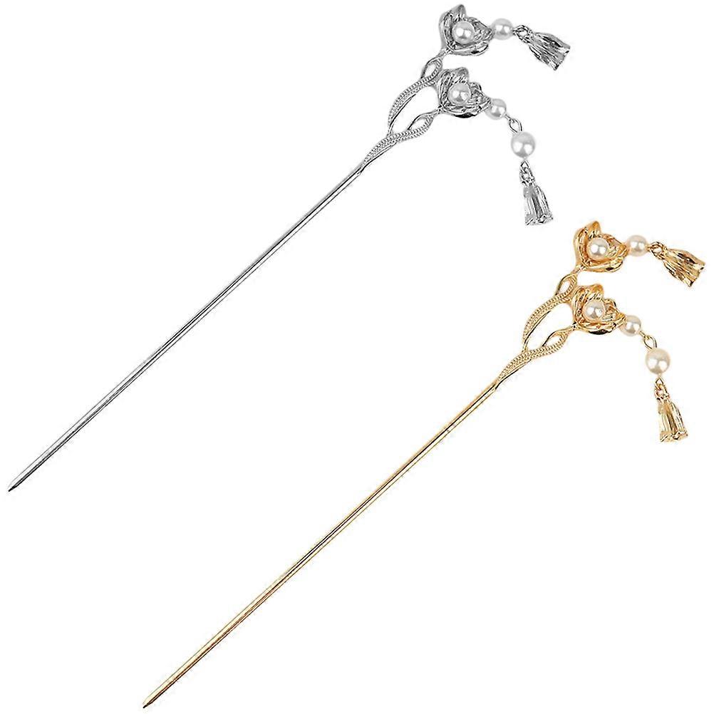 Vintage Hair Forks 2Pcs Flower Shape Styling Tool Retro Style Headdress Hair Accessories Assorted Color