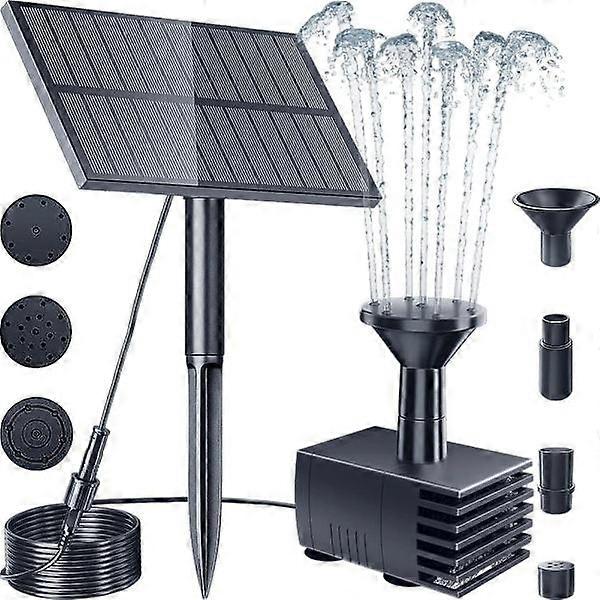 Solar powered bird bath fountain, solar powered pond pump with 6 nozzles filter, solar water features for garden small pond