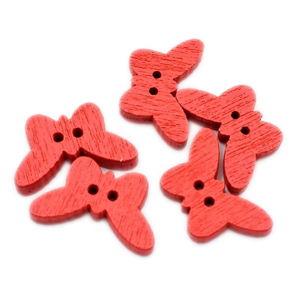 Fasteners for Sewing Wooden Butterfly Shape Kids Handcraft Accessory Assorted Color Diy Handcraft 200Pcs in 2 Pack