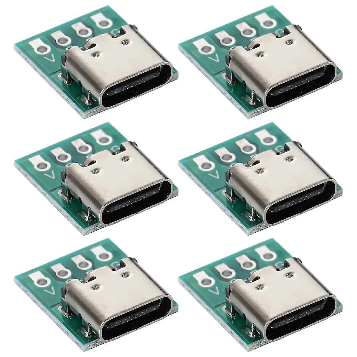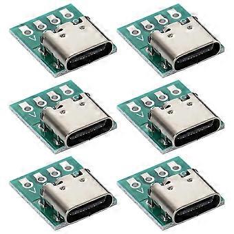 6-Piece 16-Pin TYPE-C Connector to 2.54mm PCB Adapter, 4-Pin USB C to <>-Pin DIP for Charging and Data Transmission