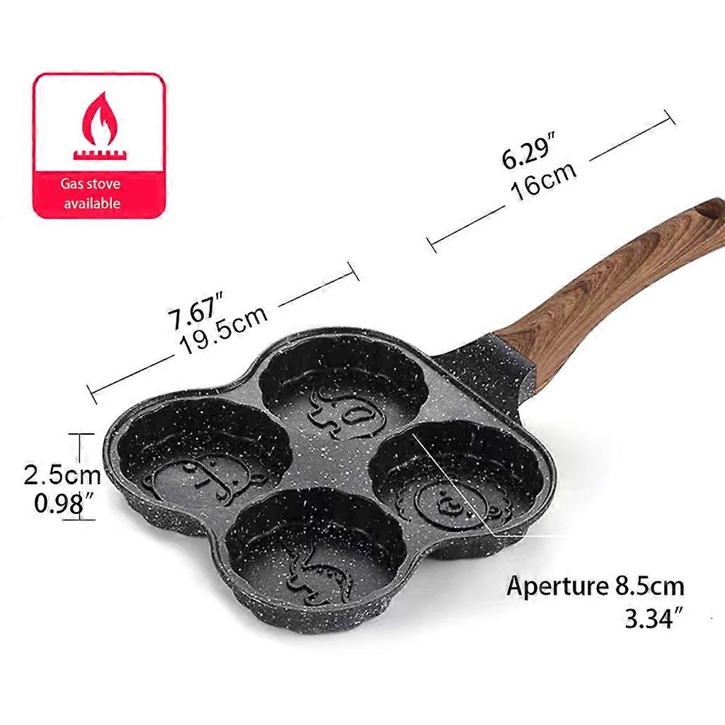 4-Hole Omelette Pan, Non-Stick, for Burgers, Eggs, Ham, Pancakes, Pans, Breakfast Grill, Wok Pot, Smokeless Oil Pot,Black Pan for Gas Stove and Electr