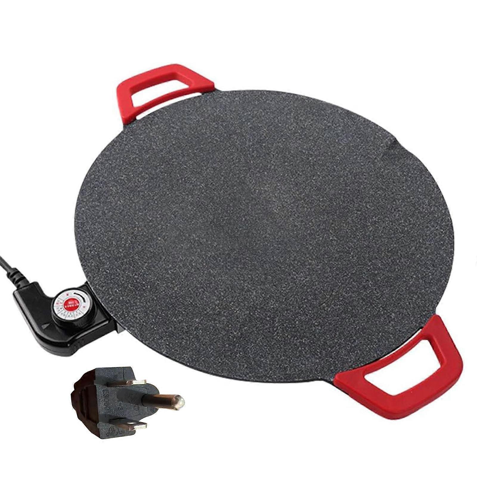 Electric Griddle with Nonstick Cooking Plate for BBQ Smokeless Round Electric Grill Pan with Temperature Knob Adjustment Multicolor