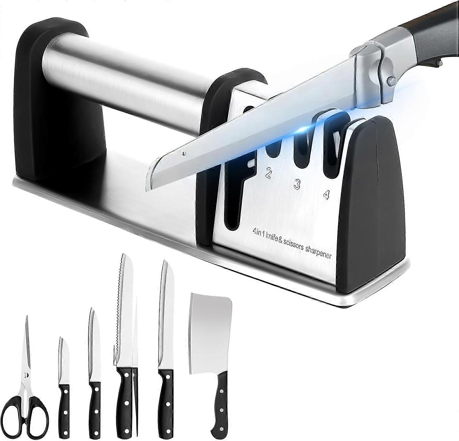 4-in-1 knife sharpener multi-purpose knife three-stage knife sharpening tool professional chef knife safe and convenient manual knife sharpener