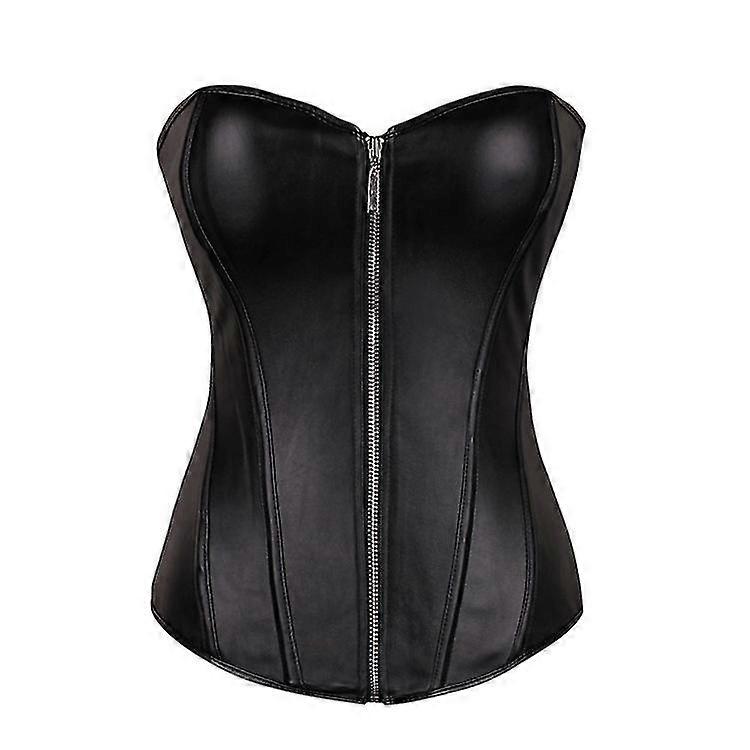 Corset Bustier Top Women Vintage Style Zip Faux Leather Overbust Corset Leather Nightclub Sexy Korsett Lingerie Strapless