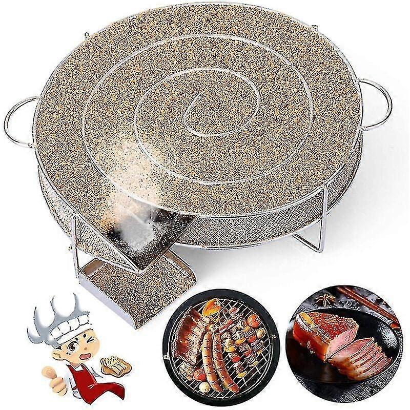 About This Item Material: The cold smoke generator is made of stainless steel which is durable. Also includes a cleaning brush. Application: Smoking spiral compatible smokehouse, ideal compatible cold smoking all kinds of foods such as salmon, sausages, duck breast, filet mignon, pork, chicken, cheese, fish, etc. .. works in the plus part of the barbecues. Design: the surface of the generator is screened allowing better air circulation in the sawdust. Spiral shape that allows slow combustion, without flame, without external heat source and over a long period of hours. Use: easy to use, just place the smoking sawdust in the spiral and light it with a torch lighter, a tealight candle or a sawdust lighter (not supplied). and that the top of the spiral is visible. Economical: Used with a variety of wood pellets such as Cherry, Hickory, Mesquite, Apple, Pecan, Beech and more. With little sawdust, it can produce hours of smoke. Product details: Dimensions: 20*18*5cm Material: Smoker: stainless steel Cleaning brush: stainless steel and plastic Maintenance: After use, please clean it with the brush and then wipe it with a cloth or the air dryer. How do you light a cold smoker? 1. Fill the smoker box with sawdust, providing that the sawdust is level and the top of the spiral is visible; 2. Light the candle (not included) and place it in position, when you see the smoke pull the candle out