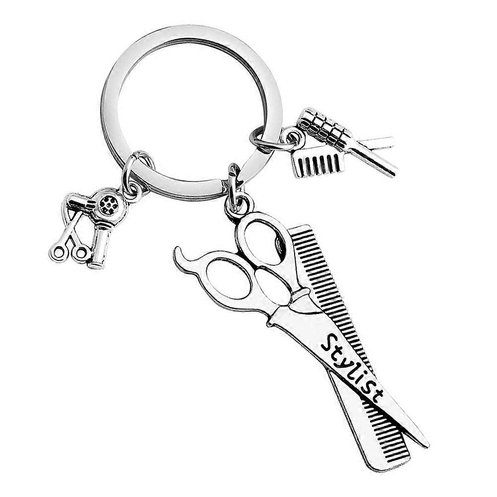 Hairdresser Key Chains Hair Styling Tools Bag Decoration Silver 8x2.5cm 2Pcs