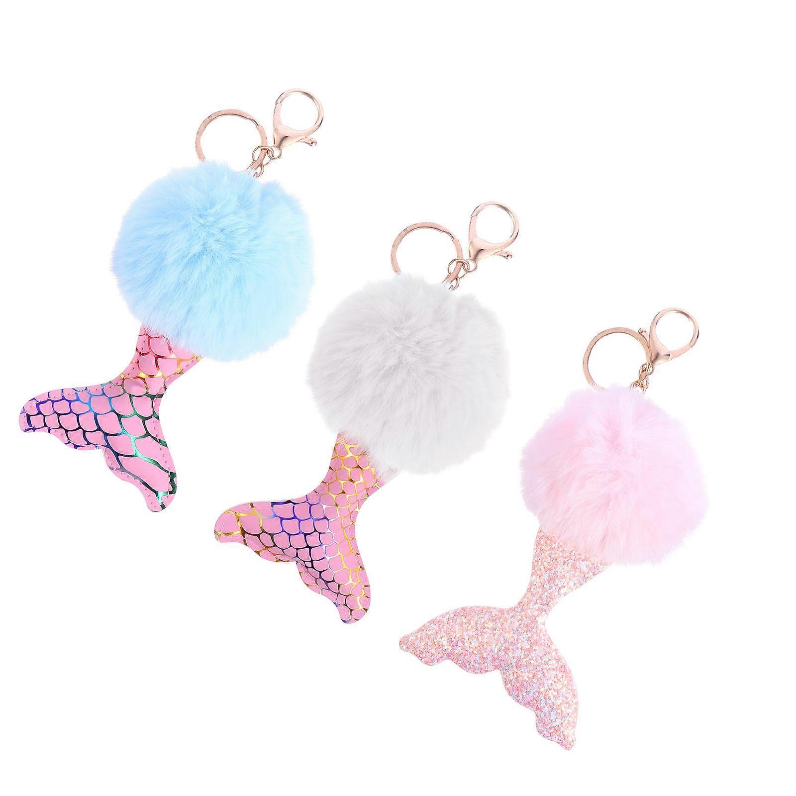 Bag Pendant Charm Keyring Fishtail Plush Ball Key Chains Bag Pendants Assorted Color Elegant Decoration 3Pcs