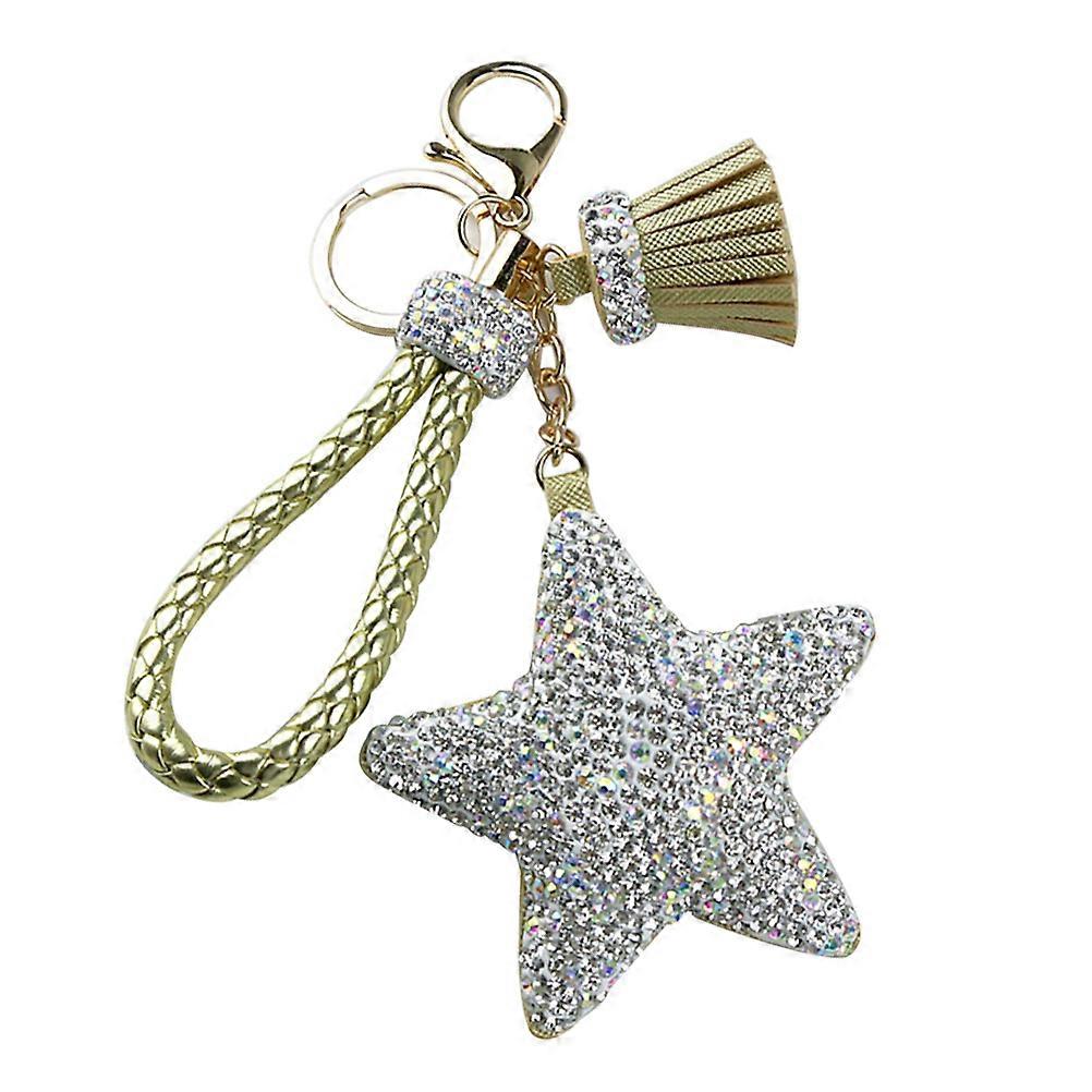 Pentagram Keychains Star Key Holder for Hanging Keys 2Pcs Golden Rhinestone