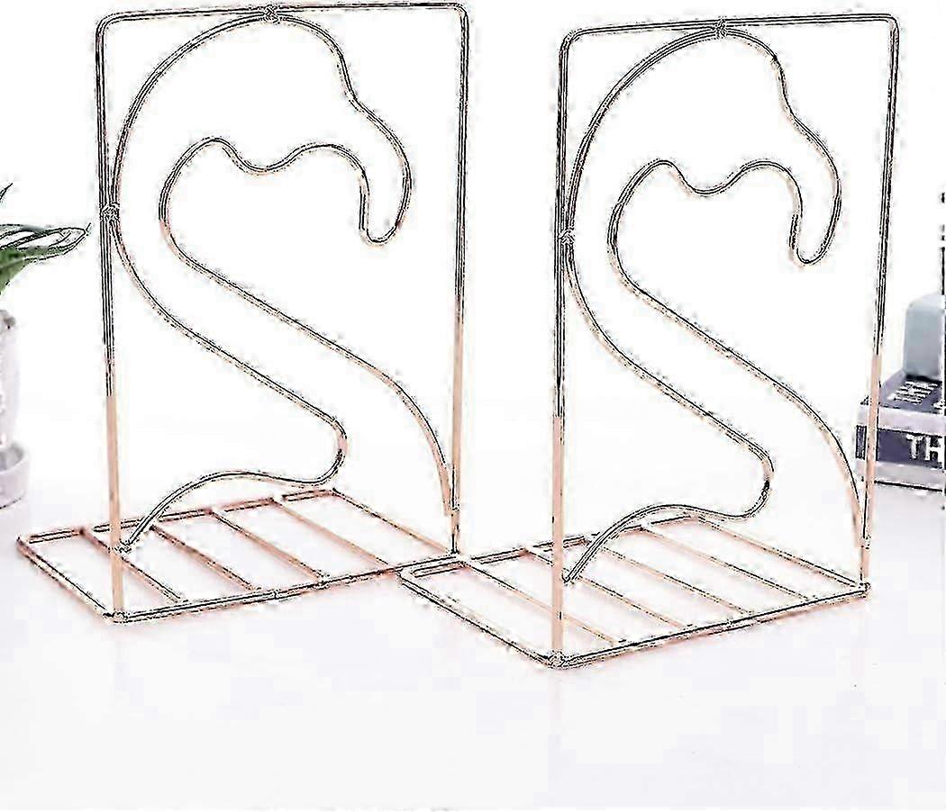 Creative Minimalist Metal Bookends, Adjustable Bookshelf, Desk Bookends - Flamingo, Rose Gold