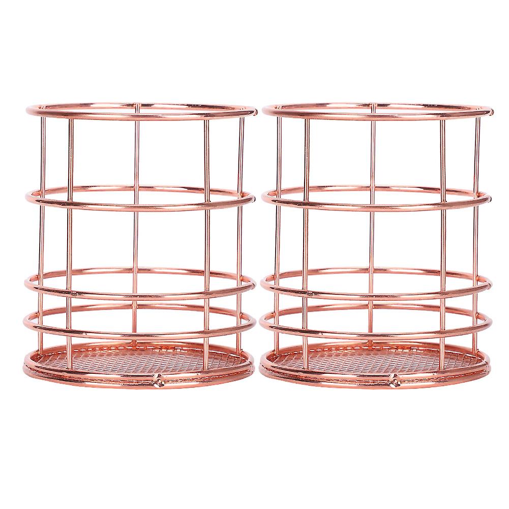 2Pcs Round Rose Gold Pen Holders: Metal Mesh Makeup Organizer Box