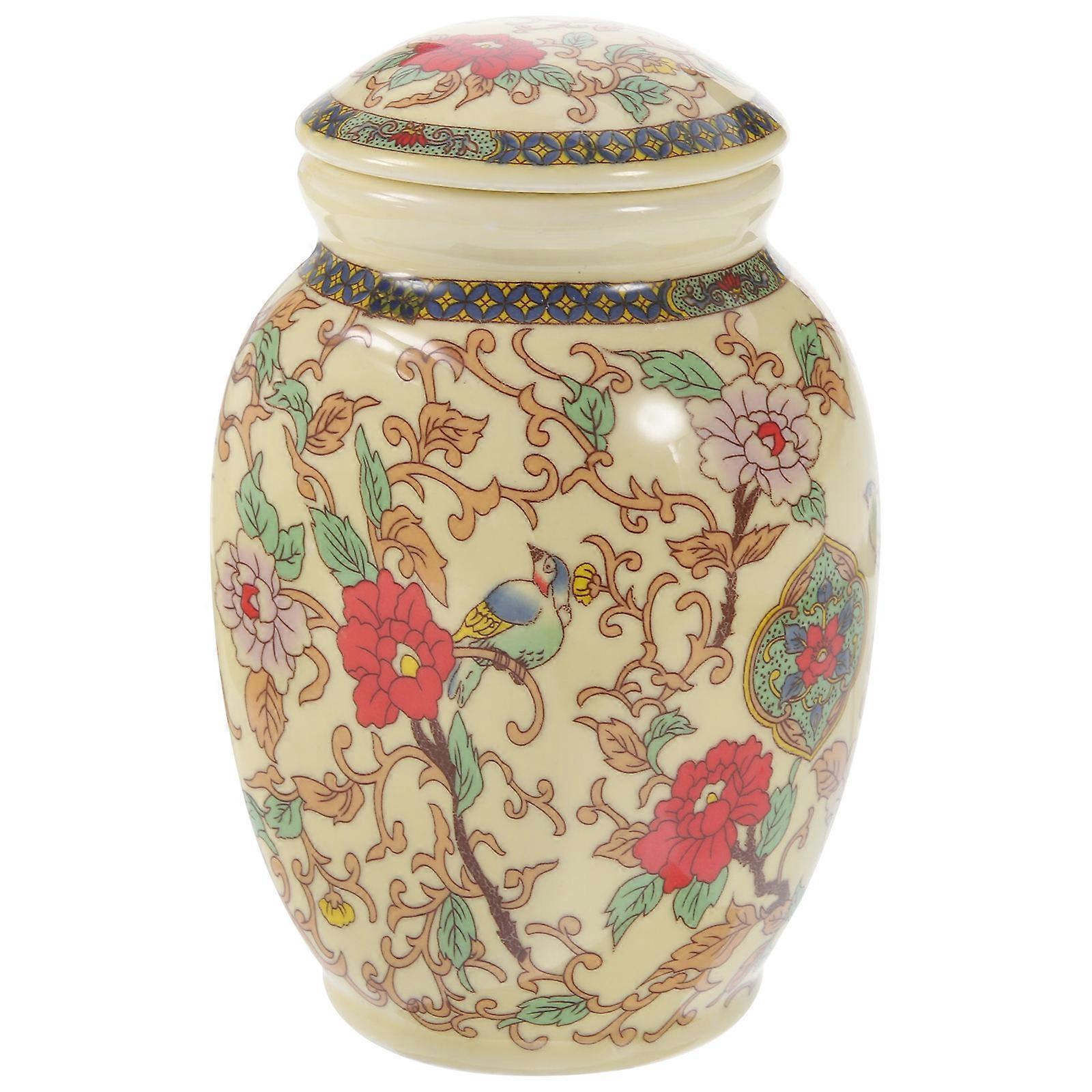 Tea Storage Holder Ceramic Storage Jar Flattened Kitchen Canisters 14.6x9.6cm 1Pack
