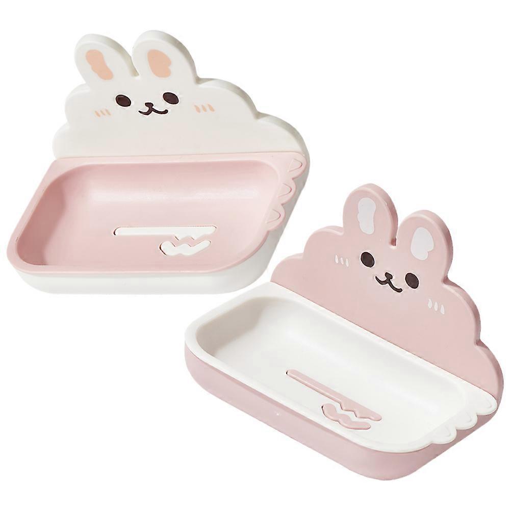 Wall Mounted Soap Dish Holder Cartoon Rabbit Shape Non-scratch Kitchen Accessories White Rabbit 14.20X10.60X9.00CM 2Pcs