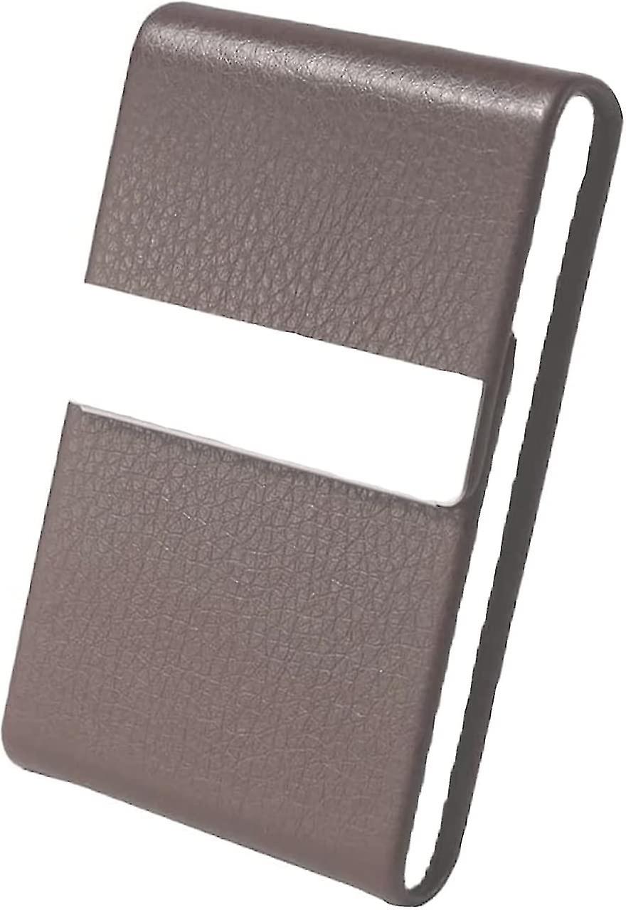 Material: The business card case is made of stainless steel and covered with high quality leather. It has a fine texture and a pleasant feeling, light and beautiful and comfortable in the hand, convenient to use. It is suitable to hold in your hand or to put in your pocket. The business card holder is easy to store and you don't have to worry about the business card falling out anymore.Professional and Modern: The perfect business card holder for anyone who wants to make a good impression. Whether at trade fairs or as a gift for your employees. This card case completes your look in any situation. Whether in the field or as a bonus for your employees. Use this card holder to present your own business cards in a professional manner or to respectfully store the business cards of your partners and potential clients.Quick Open: Business card holder for approx. 20-25 business cards (depending on the thickness of your cards) or other universal cards. The business card holder can be opened and closed magnetically. Opens and closes easily and stays closed with a magnetic clasp that won't degauss your cards; even with one hand. Perfect for a quick exchange of your business card