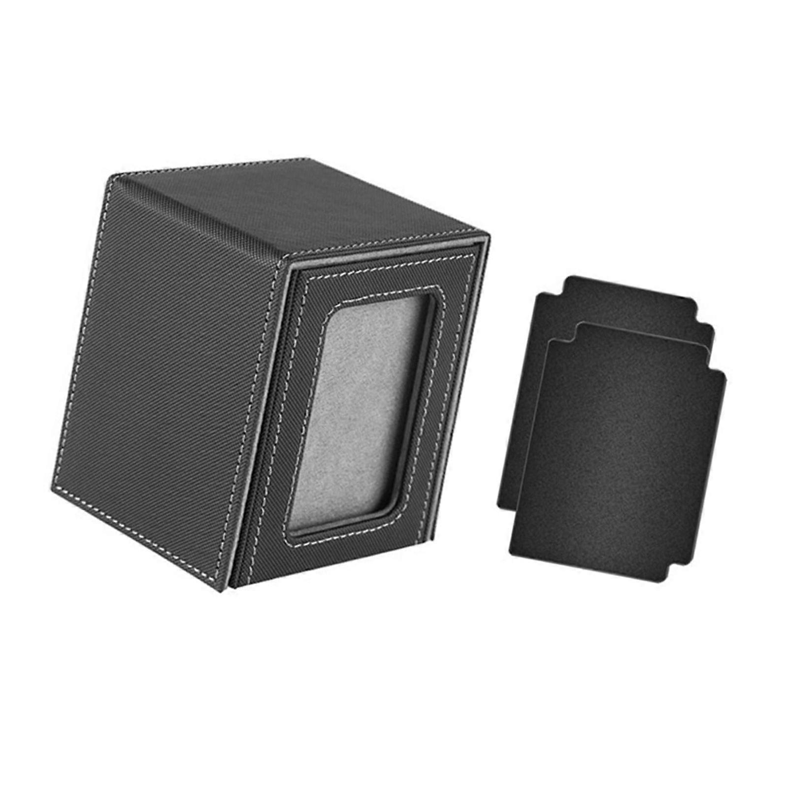 Portable Solid PU Leather Card Holder With Magnetic Closure And Viewing Window Card Case For Collectible Card Game inner gray