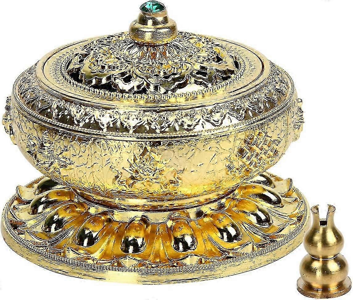 Incense Censer Burner Holder Tibet Lotus Copper Alloy For Stick Cone Coil Incenses Gold