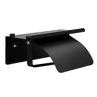 Black Paper Towel Holder Wall Mounted Stainless Steel with Shelf Waterproof Cover for Bathroom Kitchen Toilet (7.87x5.91x4.33in)