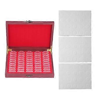 Vintage Wooden Coin Holder 50 Pieces with Transparent Protective Case for Coin Storage and Collection Gift Box