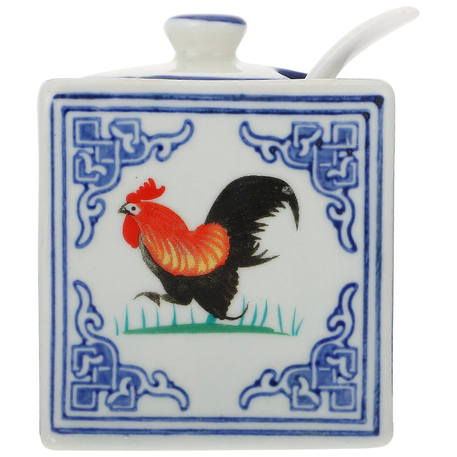 Ceramic Salt Holder with Rooster Design, Heat Resistant Kitchen Jar for Salt and Spices Storage, Easy to Clean Kitchen Accessory for Home Cooking