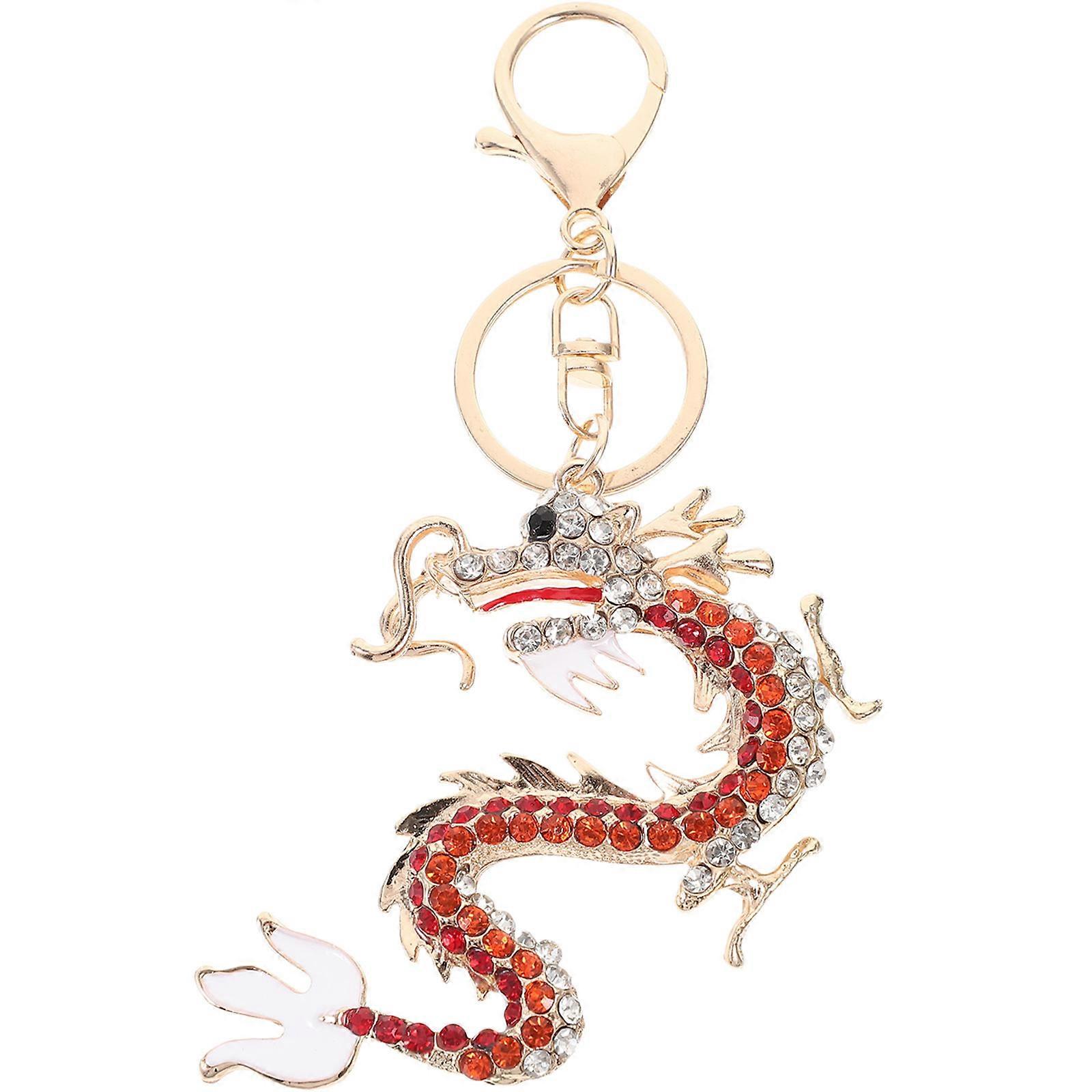 Auspicious Dragon Keychain Decorative Key Chain For Men Women Outdoor Use 8X5.8CM Red Rhinestone 1Set