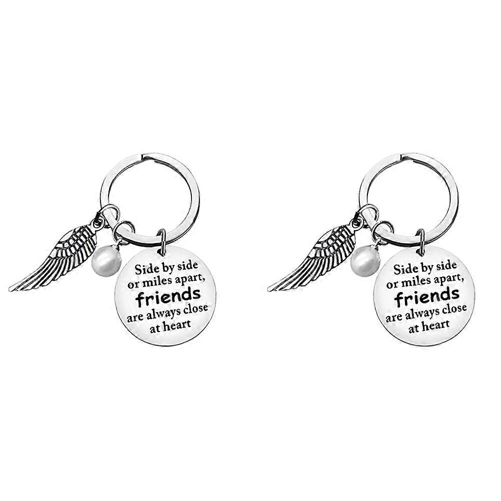 Strong Keyring Metal Keychain for Friends Detail Decoration Silver 2Pcs