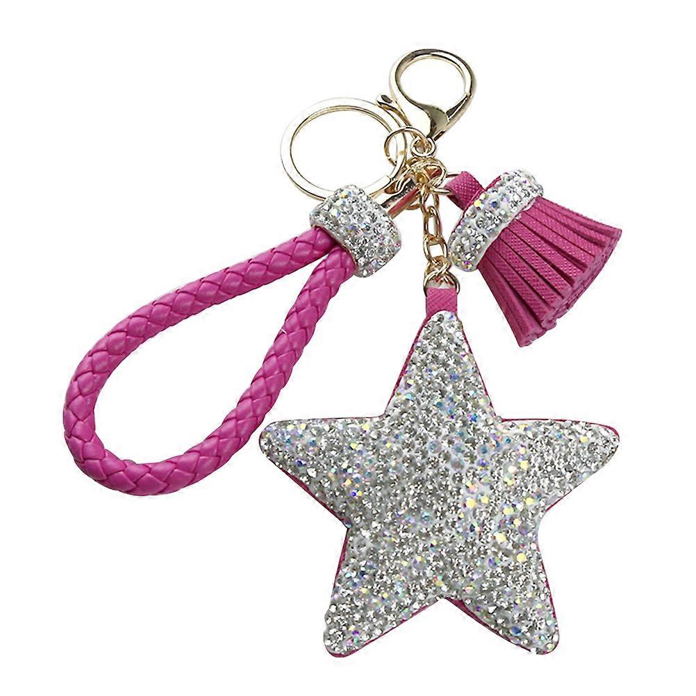 Creative Key Chain Star Keychains Charm Rosy Color Pu Material Bag Decoration 1Set