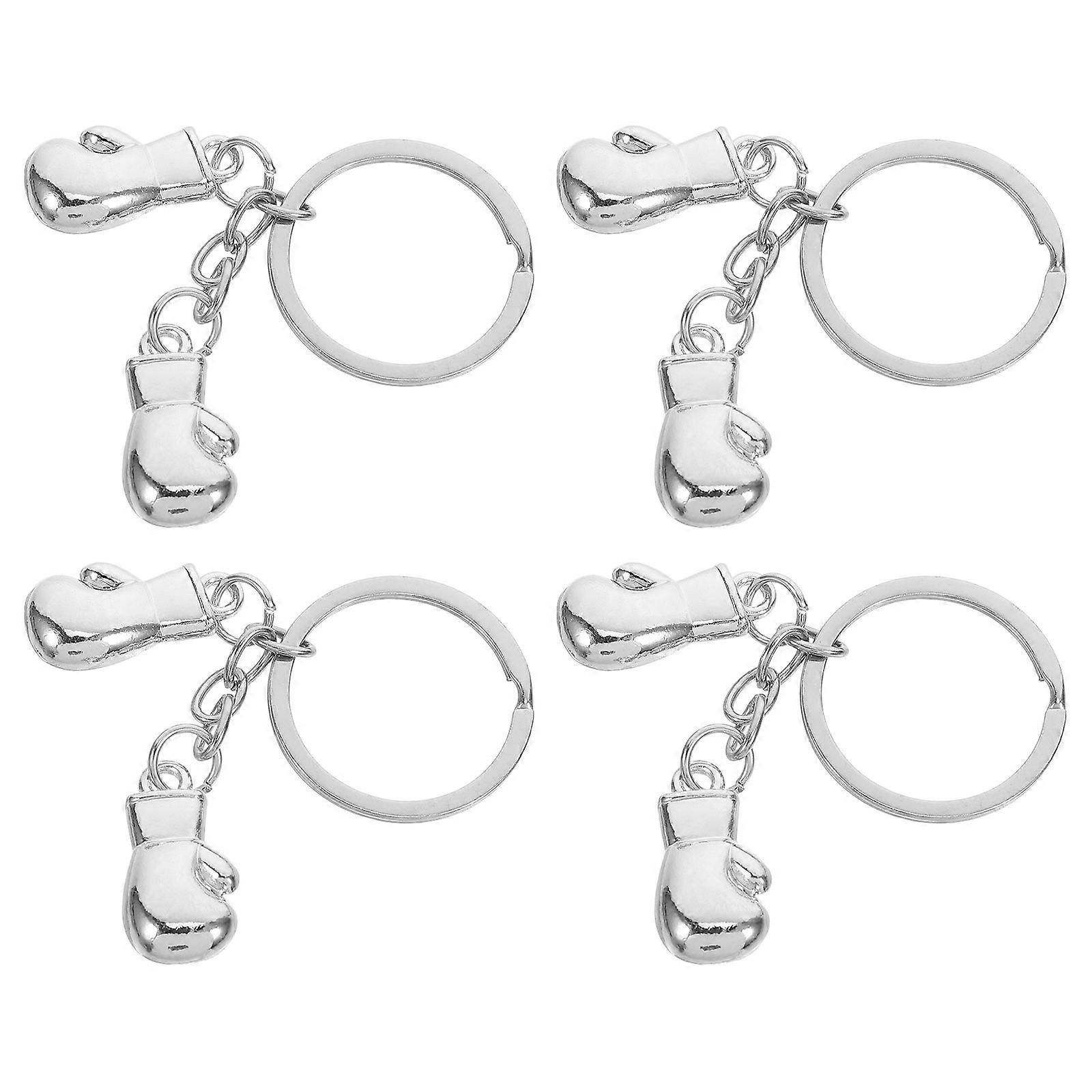 Boxing Glove Keychain 4Pcs Miniature Boxing Glove Shape Silver Diy Accessory for Gym Club Parties