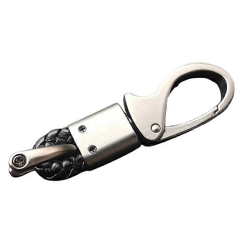 Car Key Chain Gift Metal Leather Keychain Key Ring Holder Clip Auto Keyfob Parts1pcsSilver+Black