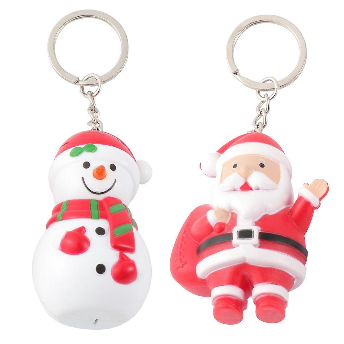 Car Keychain Pendant Santa Claus Design for Kids Daily Use Assorted Colors Lighting 2 Pcs
