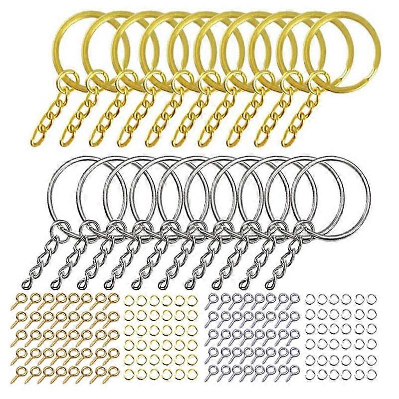 Key Ring with Chain Jump Rings Golden Silver Keychain Rings Screw Eye Pins Set