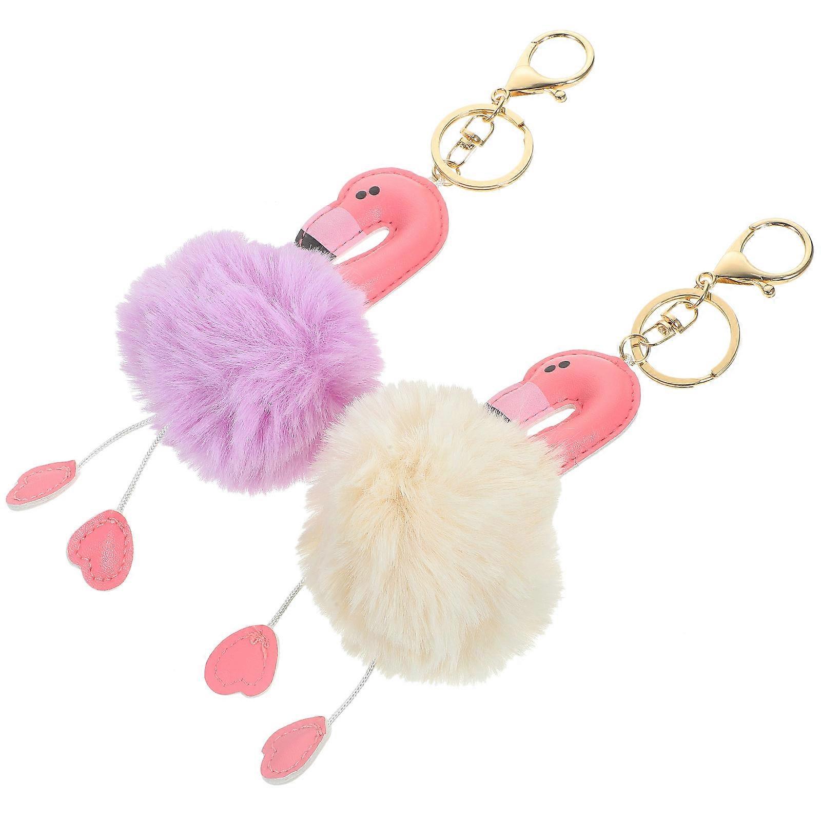 Cute Faux Flamingo Keychain 2pcs Unique Bag Pendant Key Decoration Stylish Backpack Accessories for Parties Everyday Use Purple