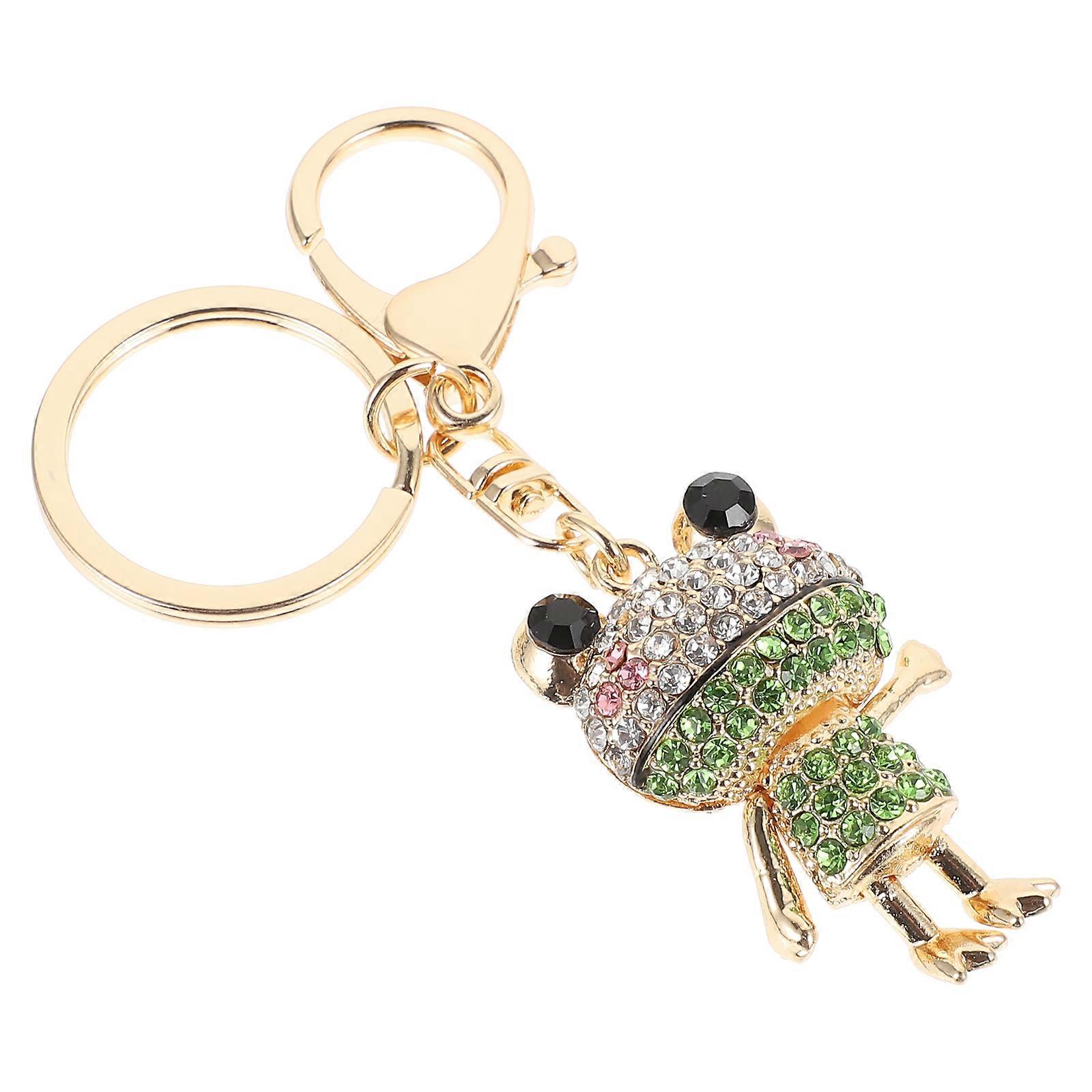 Frog Keychain Rhinestone Studded Key Decor Green Metal for 1Pack