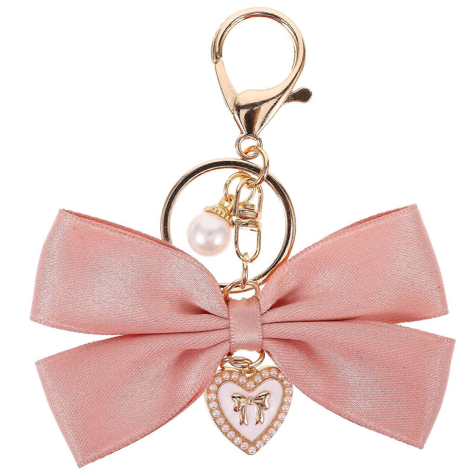 Bowknot Keychain with Heart Pendant Hanging Charm for Keys Bags Backpacks Durable Soft Color Design Unique Keyring Accessory Fashion Enthusiasts