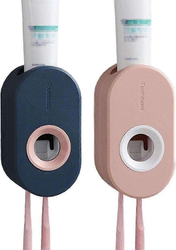 Toothpaste Dispenser Holder - 2 Pieces Wall Mounted (Pink and Blue)