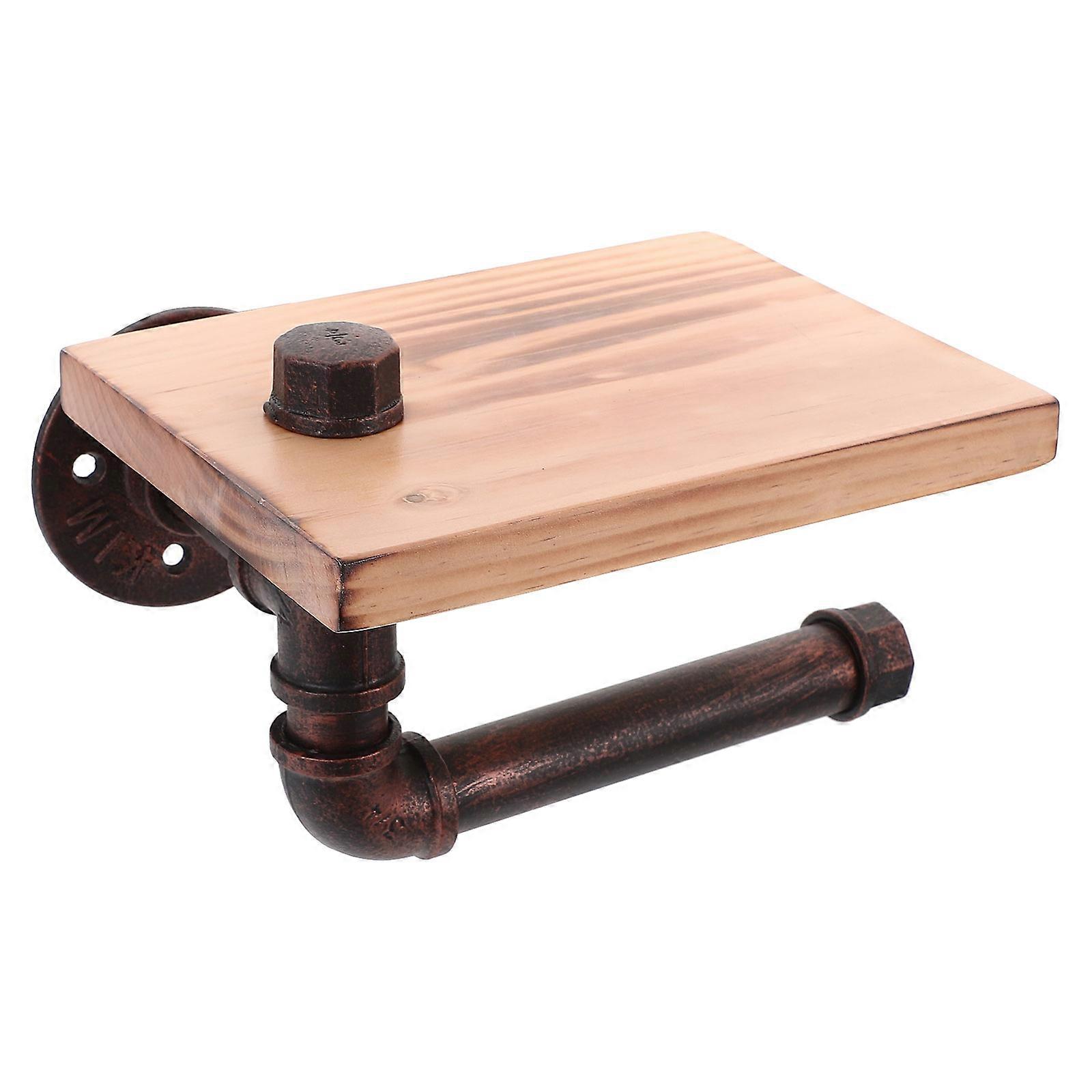 Toilet Paper Holder with Storage Wood Rack for Bathroom