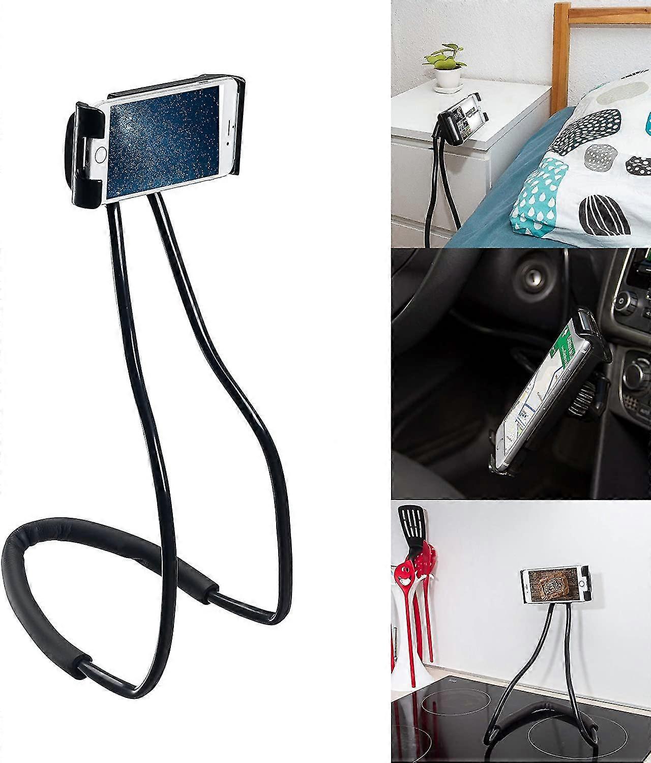 Description VERSATILE APPLICATION - Can be hung around the neck, suitable for the car and bicycle steering wheel, can be placed on the floor or on the bed to watch movies. The neck holder can be used in many different ways, let your imagination run wild ^ HIGH QUALITY ADJUSTABLE - Smart 360 degree rotatable neck holder that can be individually adjusted to your body^ FOR YOUR HEALTH - Avoid damage to your health caused by incorrect posture of the neck^ INGENIOUS INVENTION - Perfect for leisurely watching videos, movies, tutorials or playing mobile games^ MULTIPLE COMPATIBILITY - Universal cell phone stand compatible with all cell phones such as: iPhone, Samsung, Huawei, Nokia, Motorola, Honor, OnePlus etc.^