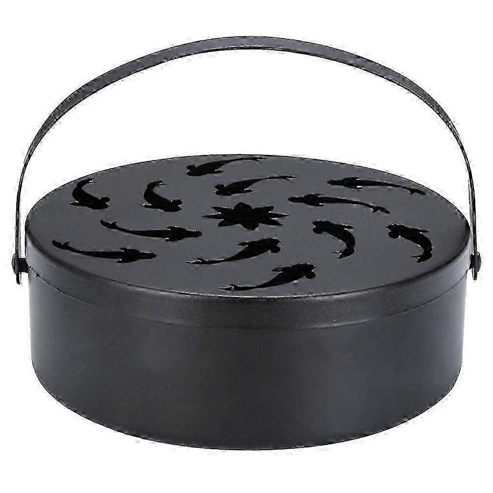Portable Iron Mosquito Coil Holder with Cover - Black Flying Fish Design (13.7x13.7x4cm) for Outdoor & Indoor Use
