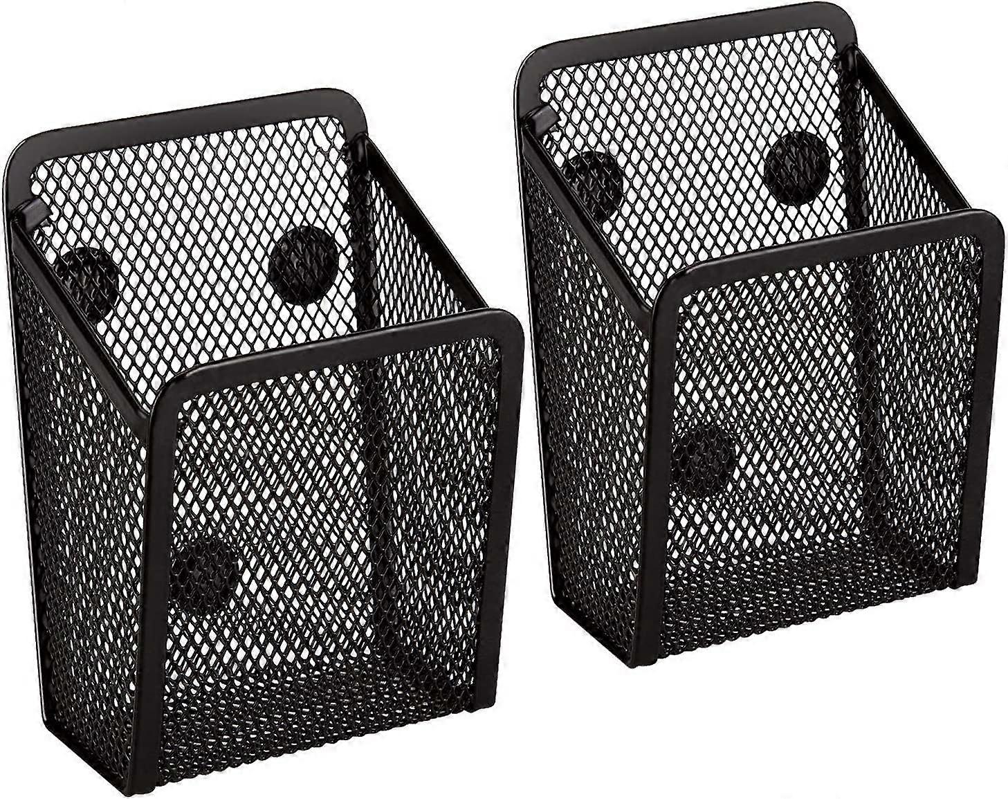 Piece Magnetic Pen Holder - Mesh Storage Baskets with Strong Magnets for Fridge Storage, Kitchen Organizer, Desk Organizer, Locker Accessories - Black