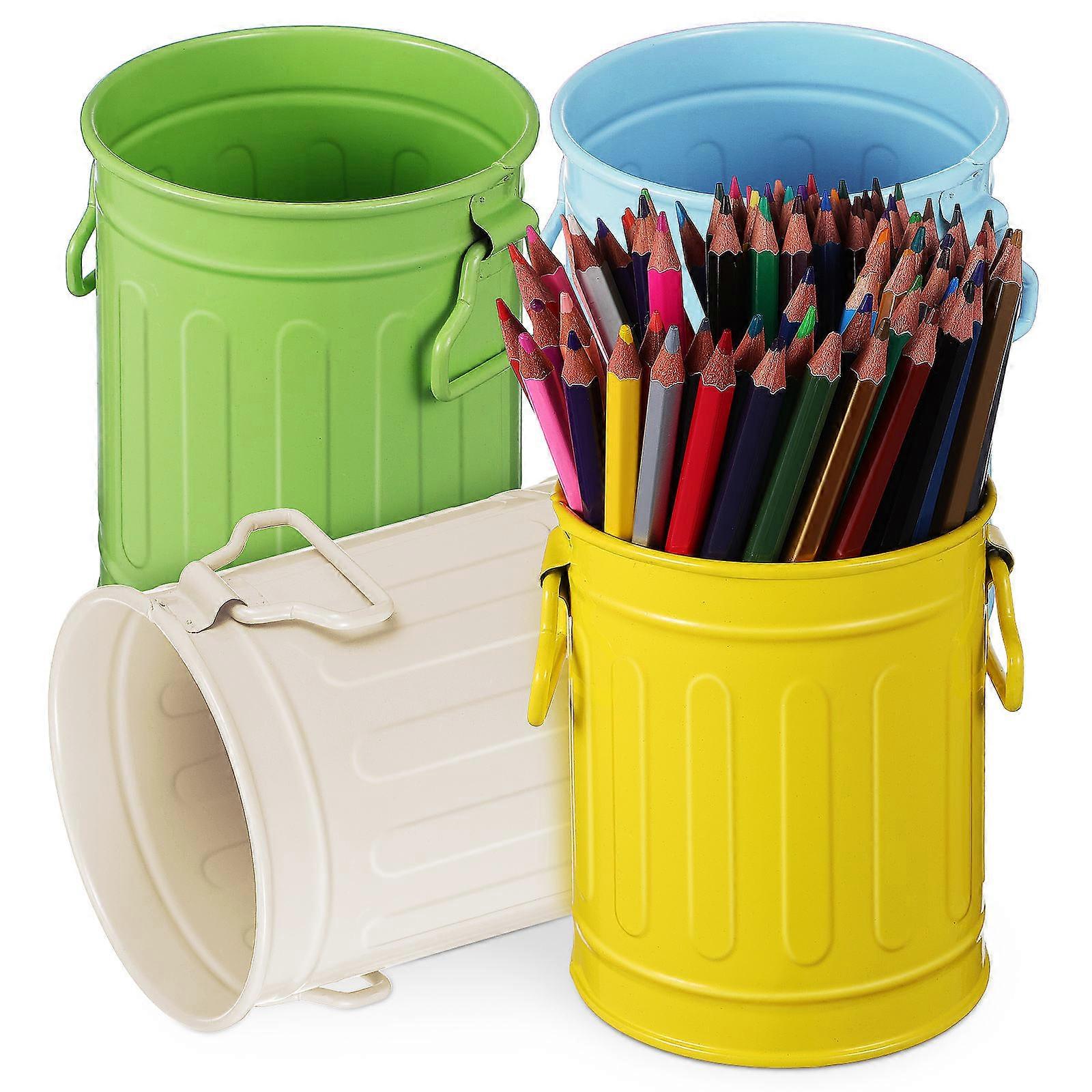 Pen Holder Cup Metal Pen Container Yellow Color 11.50X9.00X9.00CM Desk Organization Students Use 4Pcs