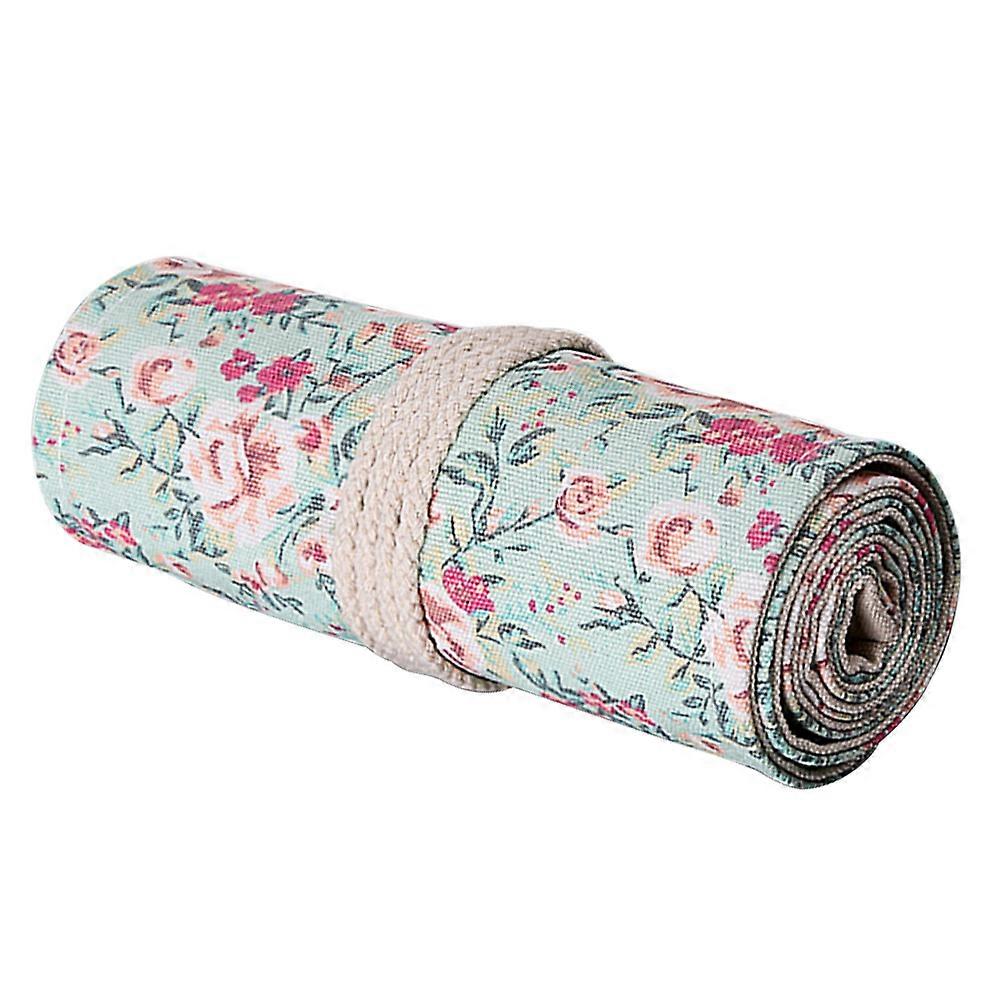 Large Capacity Roller Pen Holder Floral Handmade Canvas Storage Organizer For Artists 34X20CM Portable 1Pcs