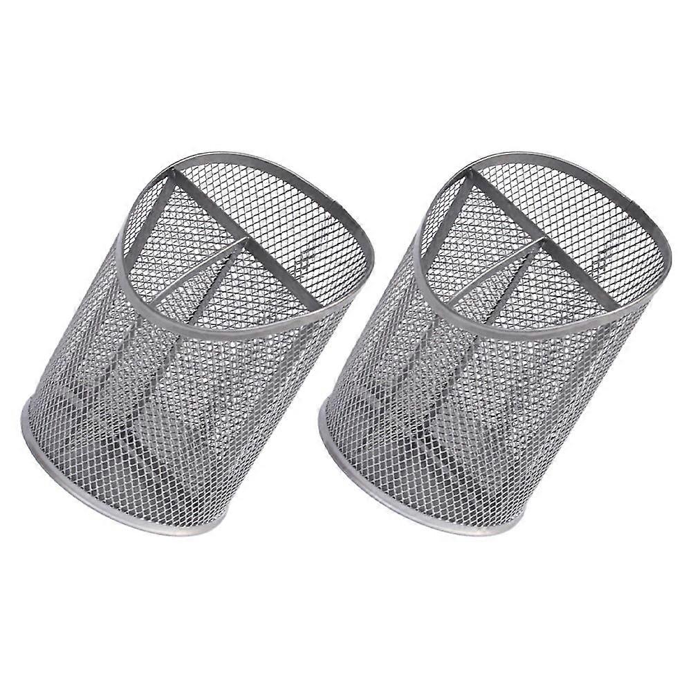 Wire Mesh Pencil Holder 2pcs Desk Organizer for Stationery Makeup Brushes Office Home Stylish Design with Compartments Easy Access