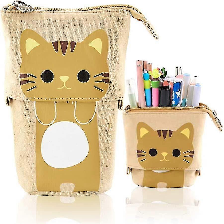 Transcompatible Withmer Stand Store Pencil Holder. Canvas +Pu Cartoon Cute Cat Tv