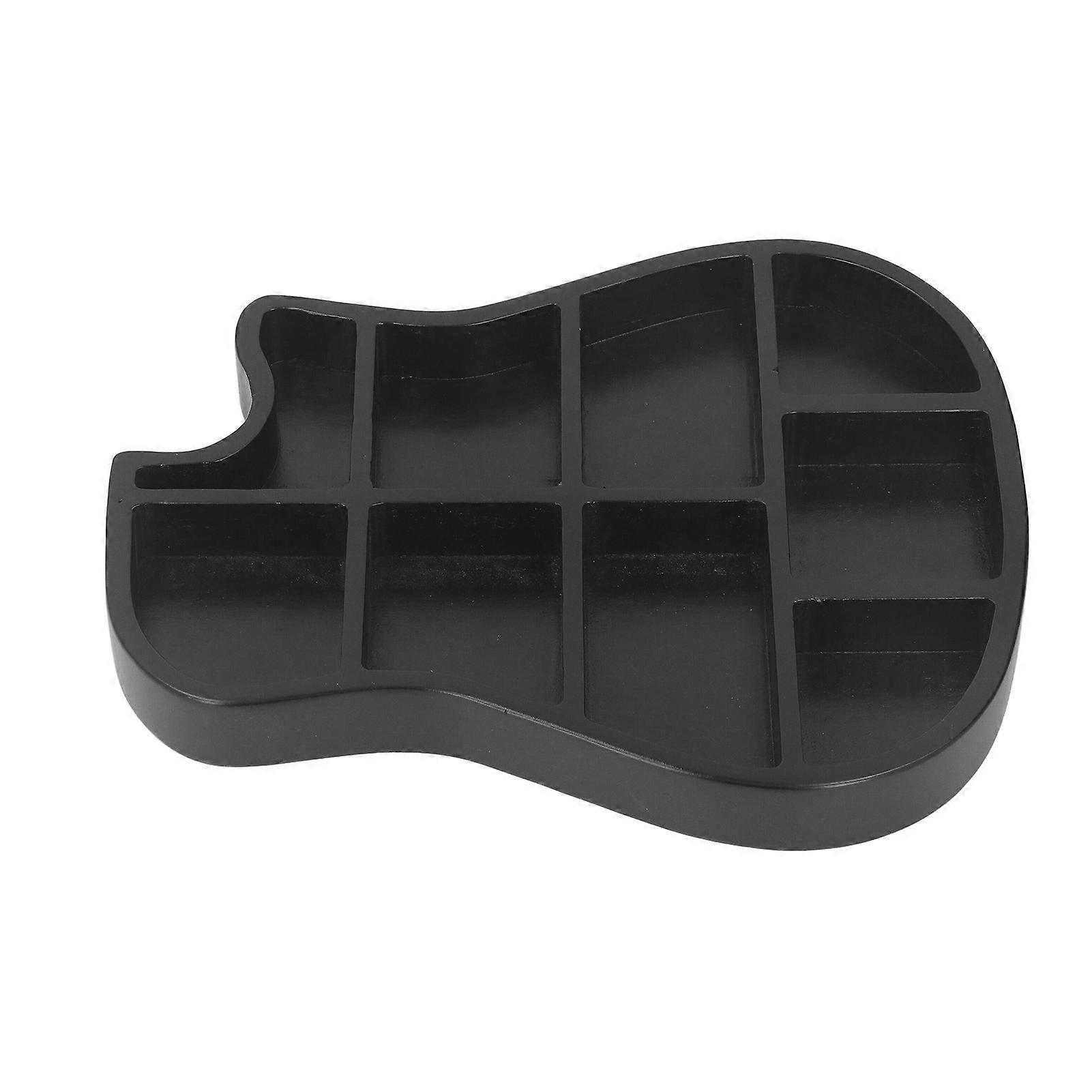 Wood Guitar Pick Holder Guitar Shaped 9 Compartment Multifunction Plectrum Accessories Storage Box Black