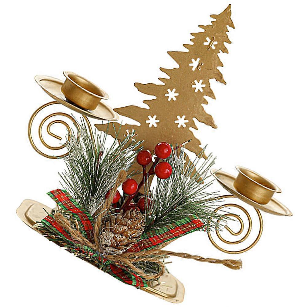 Christmas Candlestick Holder Iron Wood for Decoration 2Pcs Holiday Candle Stand