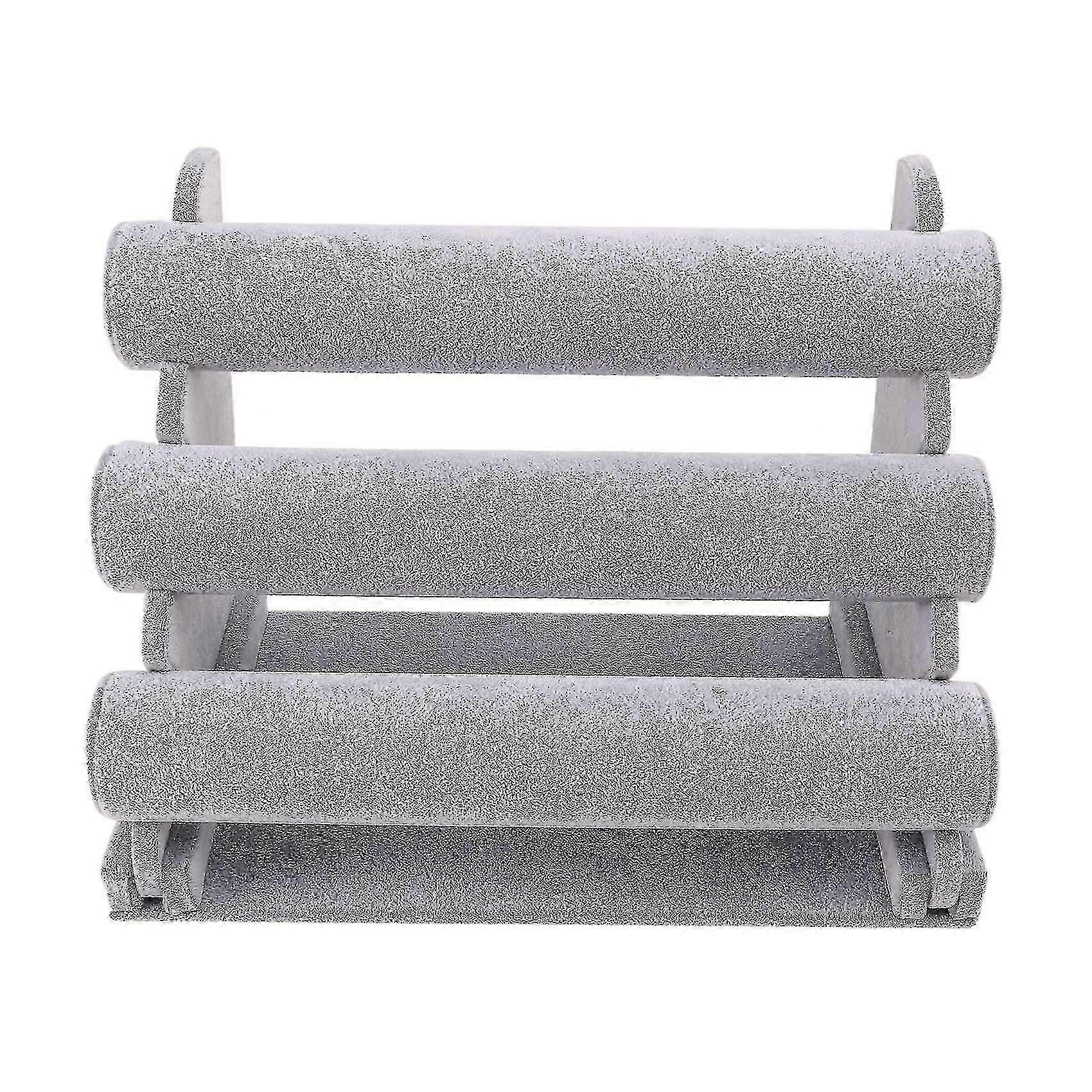 Triple Bracelet Holder Jewelry Display Stand Watch Bangle Bar Necklace Storage Organizer Gray