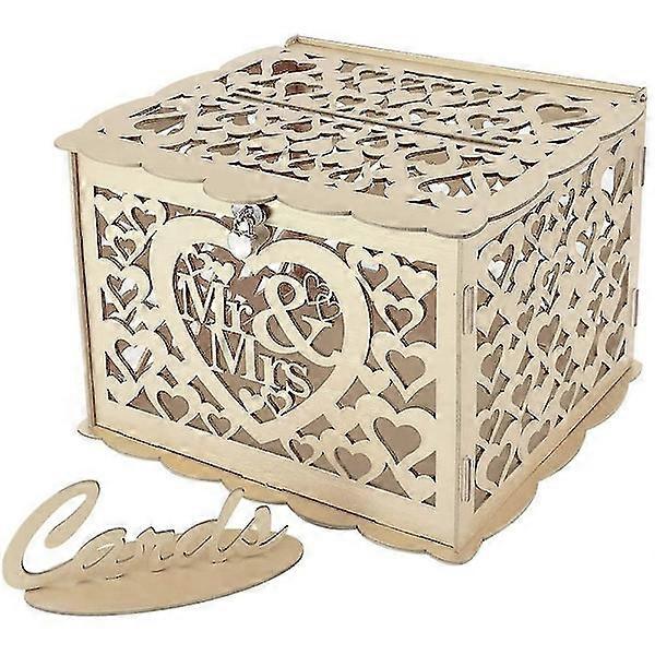 Wedding Gift Card Box Holder with Sign, Large Rustic Wood Wooden DIY Envelope Gift Card Boxes with Lock