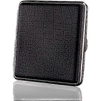Leather Cigarette Case Holder with Metal Frame, Suitable for Holding 20 Cigarettes, Elegant Design in Black Color