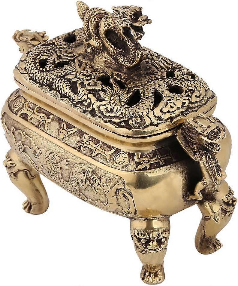 High Quality -- Made of high quality copper material, sturdy and durable, can be preserved for a comparatively long time. High Quality -- Made of high quality copper material, sturdy and durable, can be preserved for a comparatively long time. Multiple Functions -- This incense burner can be used for religious or meditative purpose; can serve you as decorative art piece as well. Range Use -- This incense holder can be used to burn many types of incense as you see fit; can hold a relatively large amount of incense ashes. Chinese Dragon Patterns -- Embossed with Chinese dragon patterns which is a good animal that can bring luck to people, this incense holder is delicate and lifelike, exhibiting fine workmanship. Great Gift -- As a functional and beautiful product, this vintage incense burner can be a good present for family or friend who is fond of antique objects.