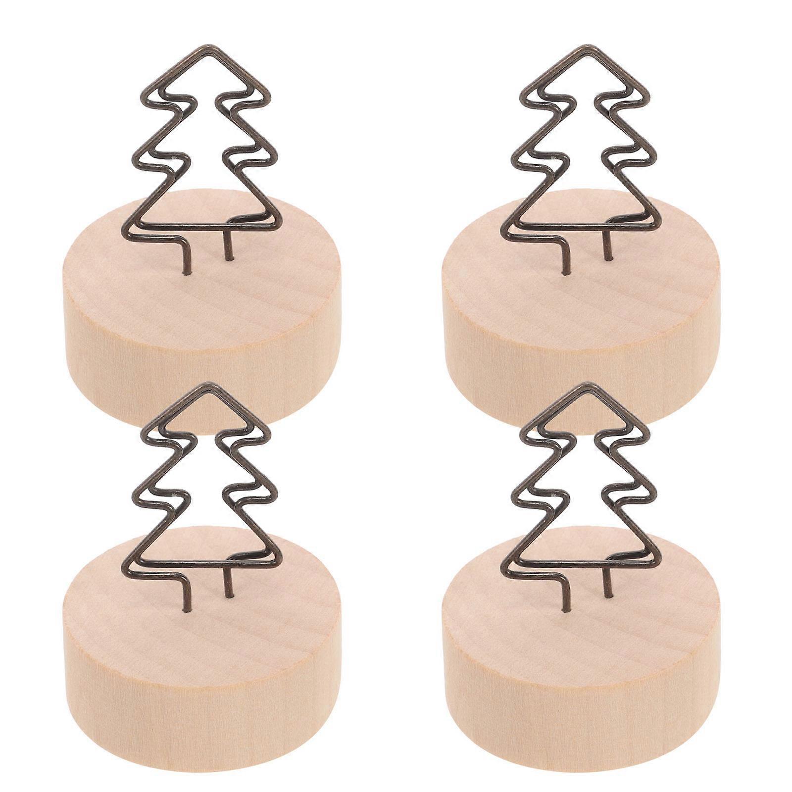 Memo Clip Holder Wooden Base Message Folder Golden 6.00X4.00X4.00CM Photo Memo 4Pcs